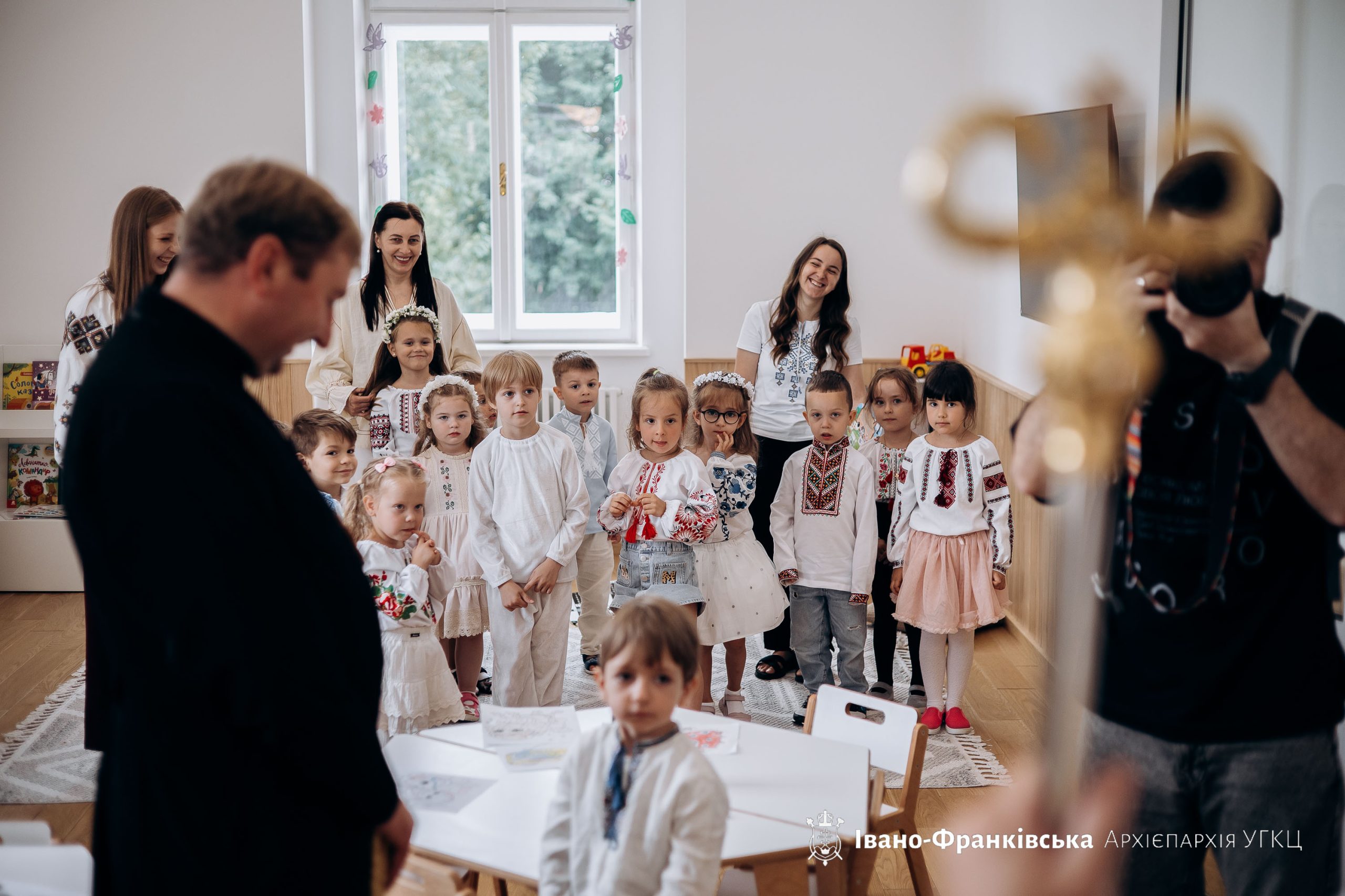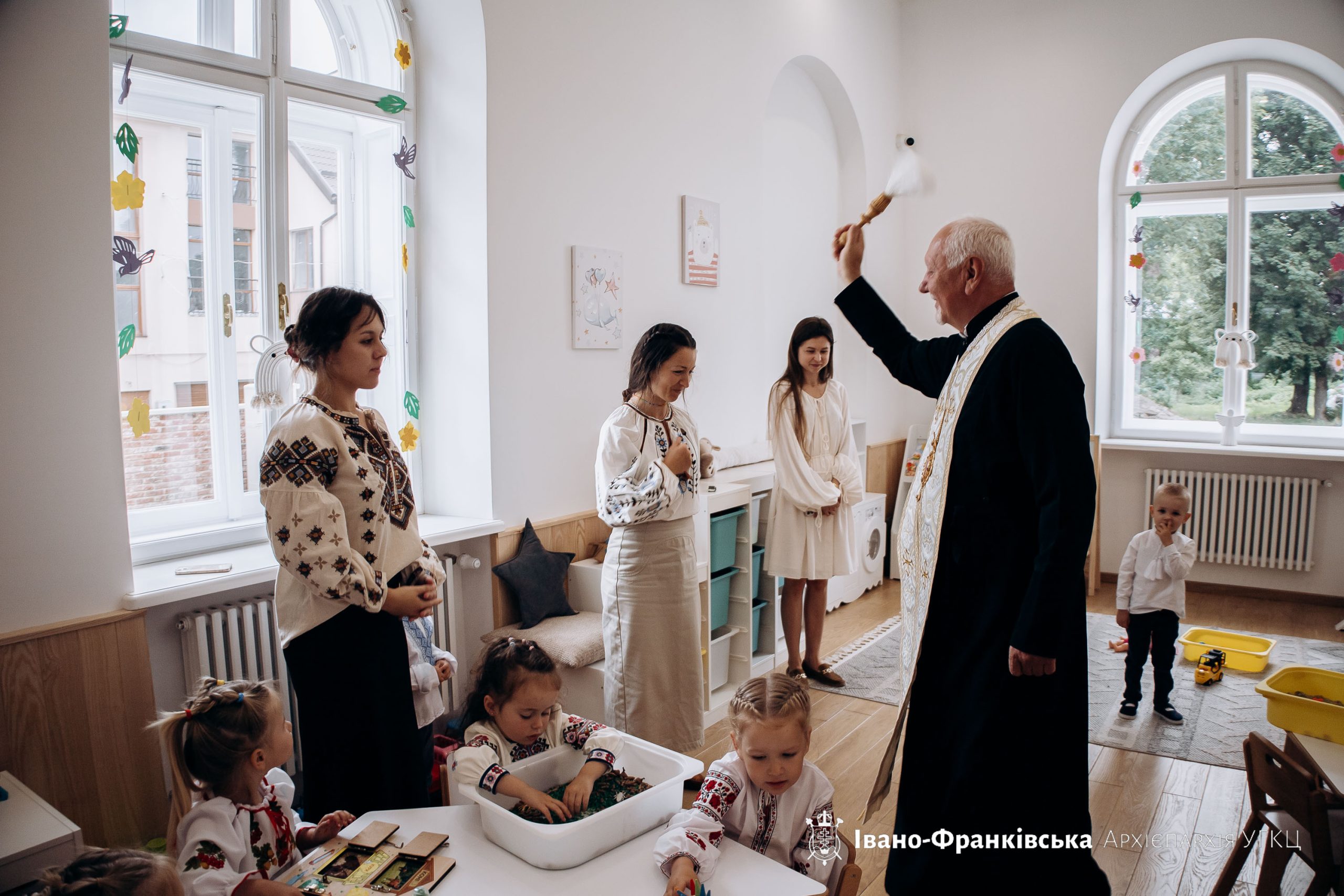 Патріарху співслужили Архієпископ і Митрополит Івано-Франківський Владика Володимир Війтишин, Єпископ-помічник Івано-Франківської Архієпархії Владика Микола Семенишин, Єпископ-помічник Коломийської Єпархії Владика Петро Голіней, а також директор Католицького ліцею святого Василія Великого о. Маркіян Букатчук. На завершення Чину Блаженніший Святослав спільно з владиками поблагословили освяченою водою всі приміщення садочка.