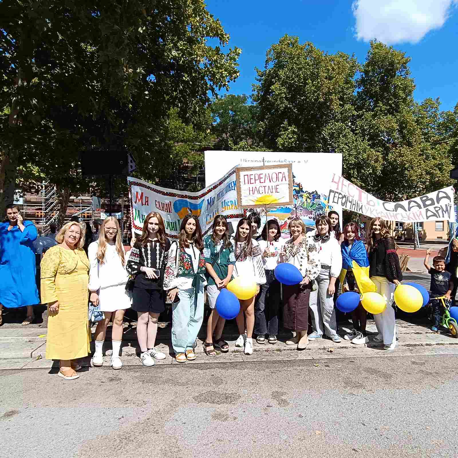 24 серпня наші учениці та вчителі приєдналися до української ходи з нагоди Дня Незалежності. Разом з українською громадою Саарбрюкена вони пройшли вулицями міста з прапорами та гаслами, відчуваючи єдність і підтримку. Велику роль у цьому відіграли німецькі сім’ї, які щиро прийняли учасників до своїх домівок.