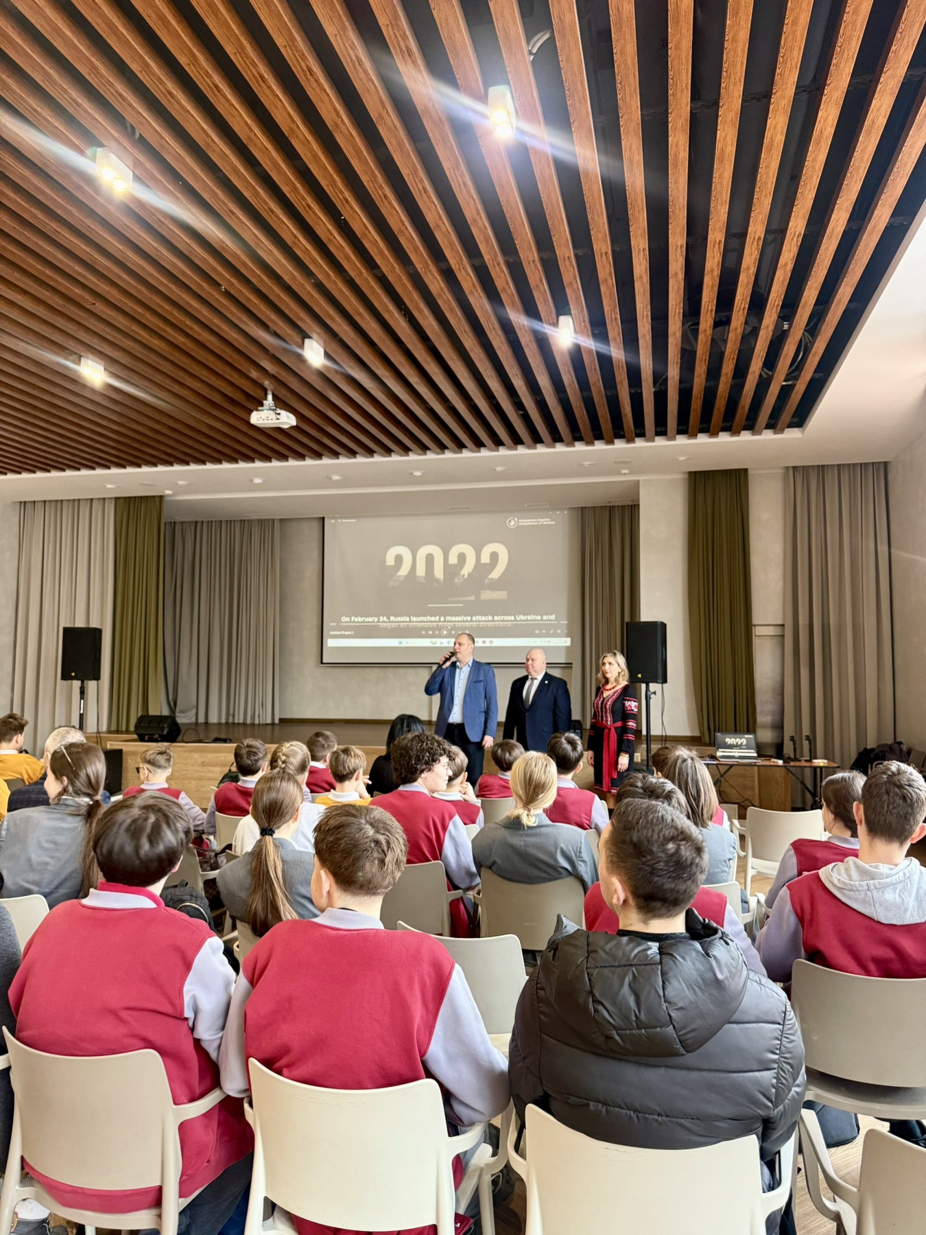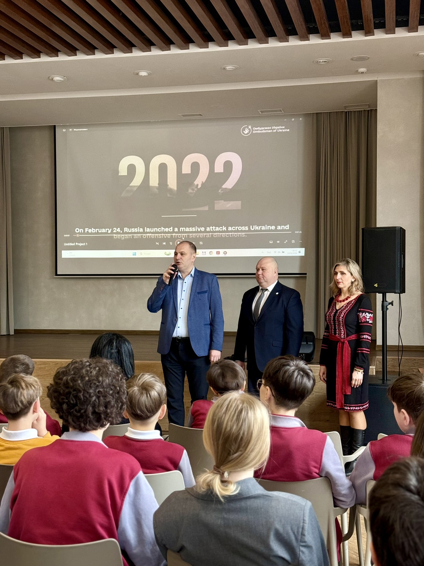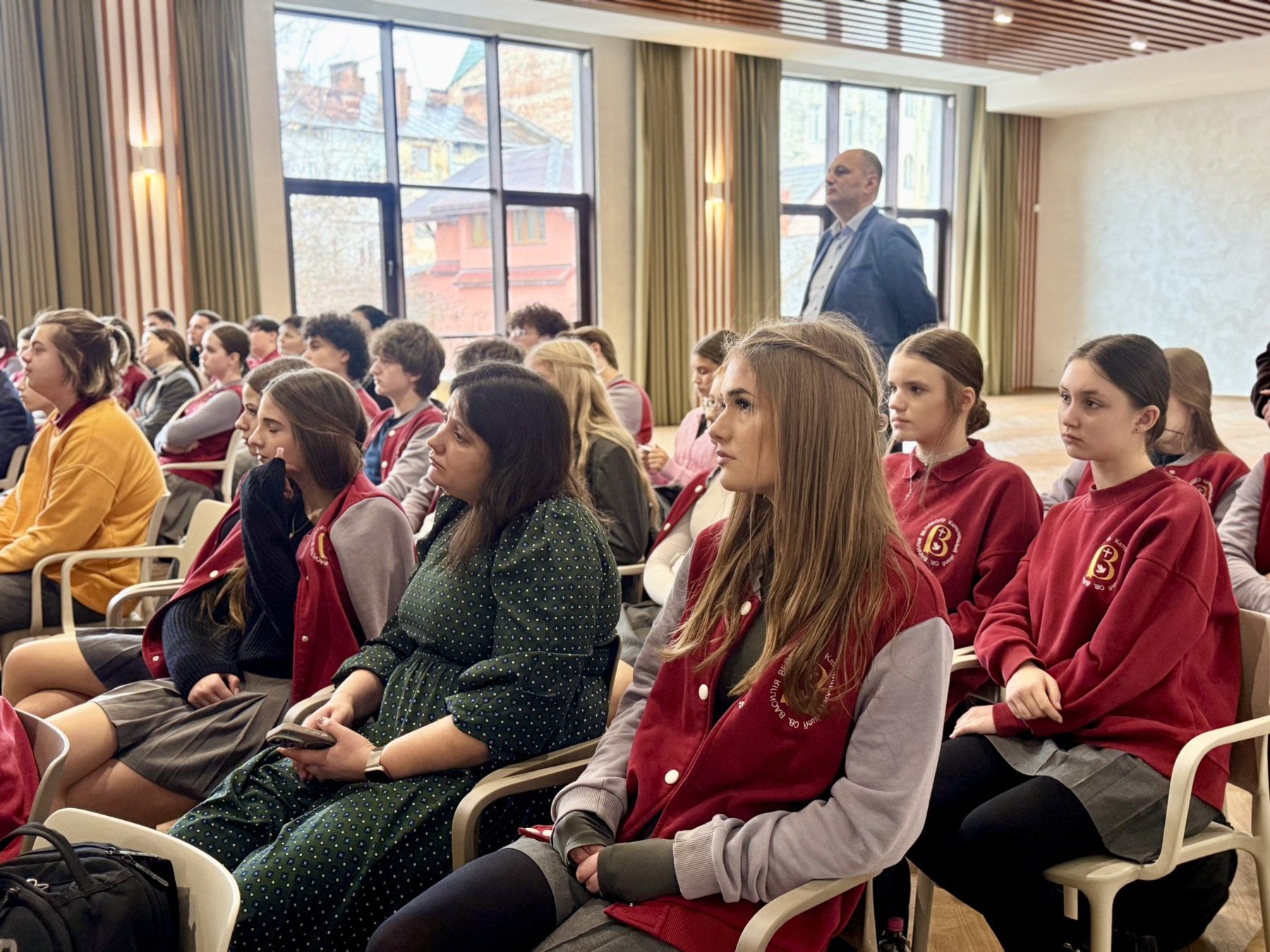 До Католицького ліцею святого Василія Великого завітали регіональний представник Уповноваженого Верховної Ради з прав людини Віталій Вербовий та експертка з питань захисту прав дітей Тетяна Фурса. Зустріч відбулася з нагоди 4-ї річниці повномасштабного вторгнення.