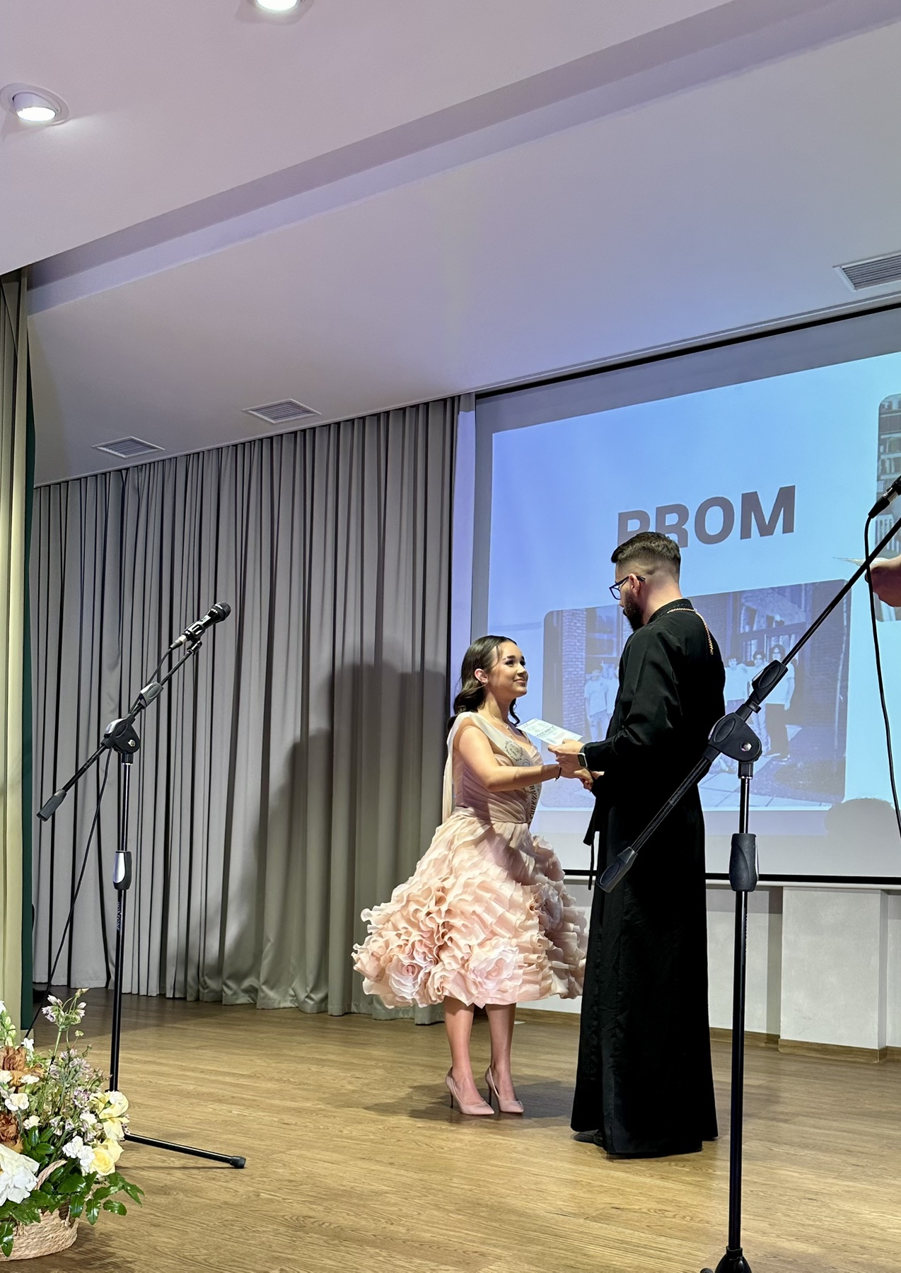 Від імені адміністрації, усього колективу ліцею й нашої спільноти щиро вас вітаю. Нехай Господь дарує вам можливість радіти плодами своєї праці. Сьогодні ви отримаєте свідоцтва про освіту, але пам’ятайте: найголовніше свідоцтво вручає Бог. Нехай Господь благословляє вас на нових дорогах!»
